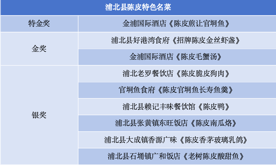 本次大赛设有“浦北县陈皮特色名菜”和“浦北县陈皮特色小吃”两大奖项。分别设置特金奖1名,金奖2名,银奖6名,铜奖若干名,从陈皮风味度、陈皮创意融合等维度进行评价。